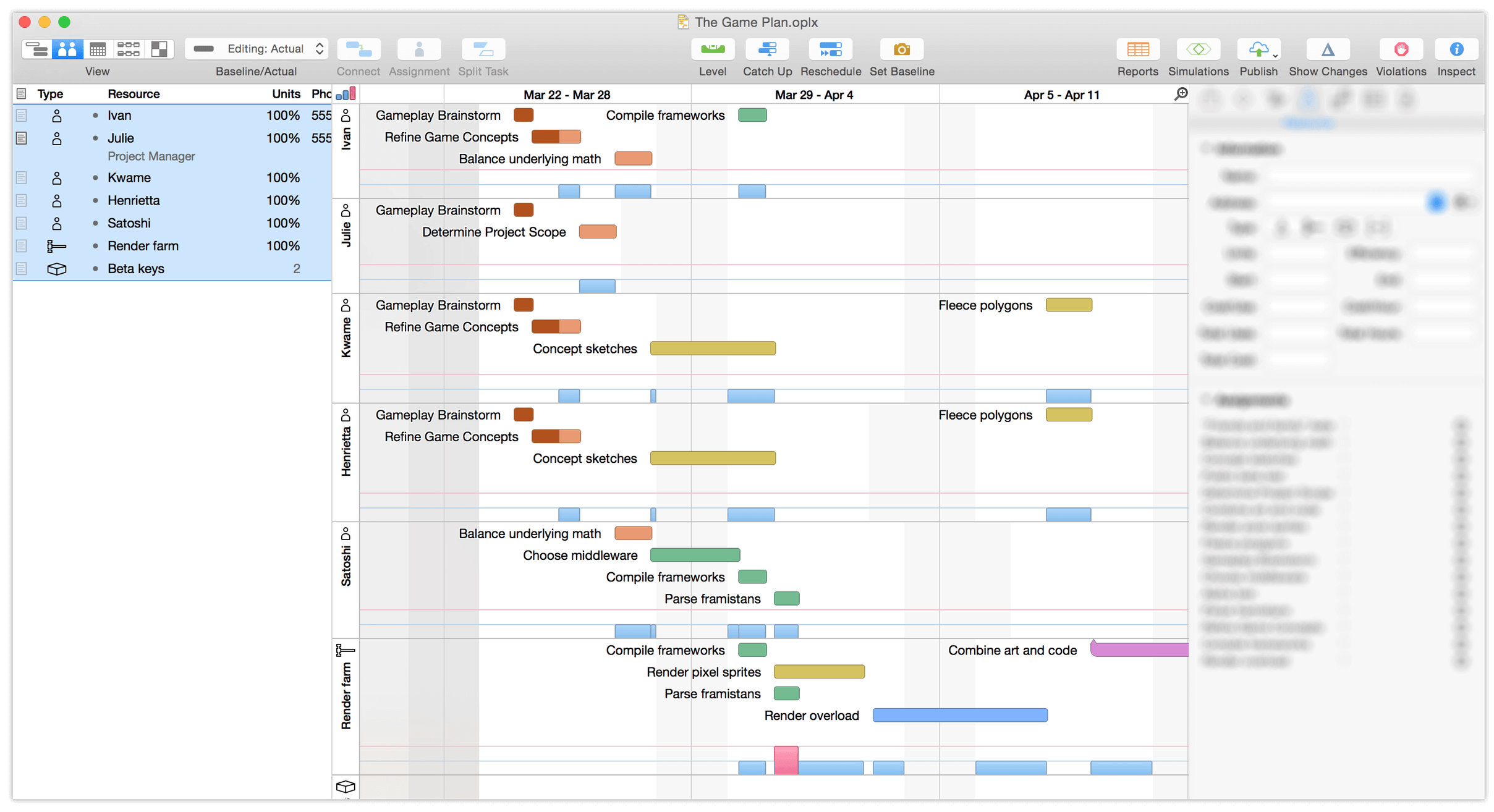 OmniPlan 设计用于帮助您对项目进行可视化、维护以及简化。细分任务,优化所需资源、控制成本并监控您的整个计划 — 全部一目了然。与您的同事协作,分享每个细节,更新日历,或综合使用。逐个接受以及拒绝更改,或一次性全部处理完。